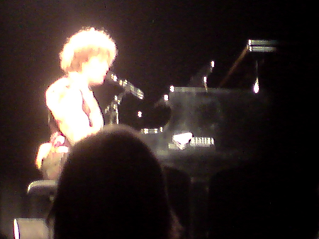 Zie de foto... God, wat was die camera een miskoop bij die aardige meneer van de mobiele winkel. De geposeerde foto's en landschappen doen het goed, maar waar ik het ding voor wou hebben, stiekem fotograferen in het theater en tijdens concerten... Flut. Maar nogmaals, zie de foto. Heel goed kijken en dan zie je dat ze op een piano van mijn beneden buurman speelt. Dat is dan toch geinig!